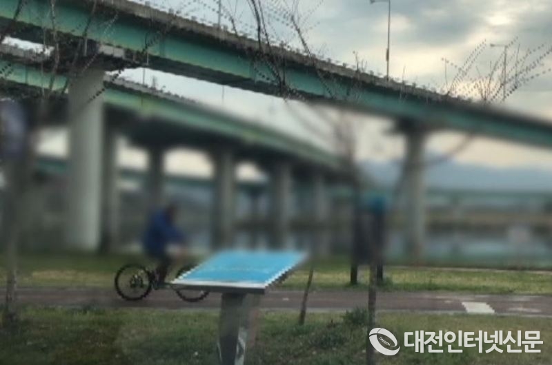 절취한 자전거를 유유히 타고 달아나는 모습이 인근 천변 CCTV에 찍혔다(사진=대전청)