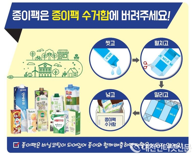 ‘종이팩 분리수거’ 전면 실시, “종이팩, 일반폐지와 분리배출 해야 재활용 가능하다(사진-세종시청)