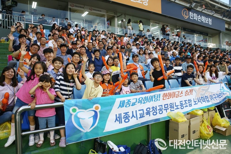 [대전 인터넷신문=세종/박미서기자] 세종시교육청과 교육청 공무원노동조합은 19일 한화생명 이글스파크를 찾아 노사가 함께하는 문화 활동을 가졌다.