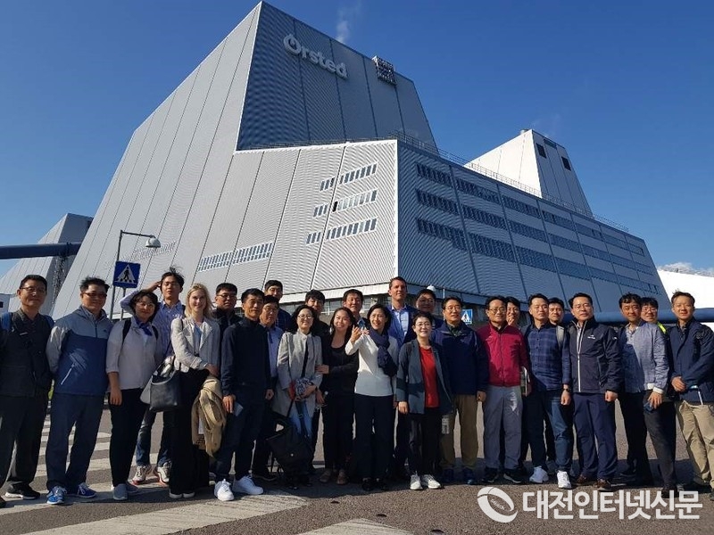 덴마크 아베도르 바이오매스 열병합발전소 방문한 박정현 대덕구청장(가운데)와 에너지정책 전환을 위한 지방정부협의회 대표단(사진-대덕구청)