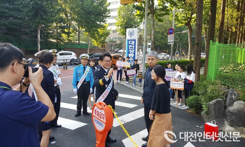 [대전 인터넷신문=대전/창길수 기자] 대전경찰청은 2019. 9. 25.(수) 08시, 서구 월평동 소재 성룡 초등학교에서 녹색어머니회를 비롯하여 모범운전자회 교사, 학생, 교통경찰 등 40명이 참여하여 어린이 교통사고 예방을 위한 등굣길 교통안전 캠페인을 펼쳤다.