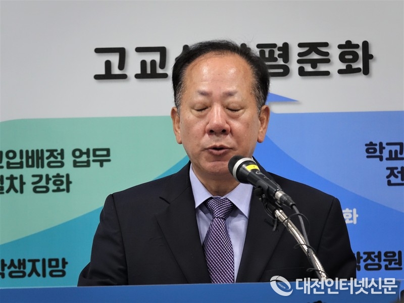지난 9월 3일 이승표 세종교육청 국장이 ‘2020년 고등학교 입학전형 기본계획’을 밝히는 도중 성남고 미달사태로 인한 내신 불이익은 경미한 것이라고 해명하는 모습. [사진-대전인터넷신문]