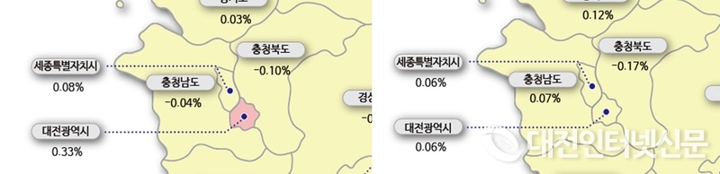 인근 도시 대전 아파트 매매가격은 상승세를 이어갔다. 중구 등 대단지 밀집으로 거주선호도 높은 서대전역 인근 등 수요 지속 유입되며 상승폭 확대됐다. 서구는 둔산·월평동 등 주거여건 양호한 단지 위주로, 동구(0.25%)도 정비사업 영향 및 대단지 수요로 상승했다.