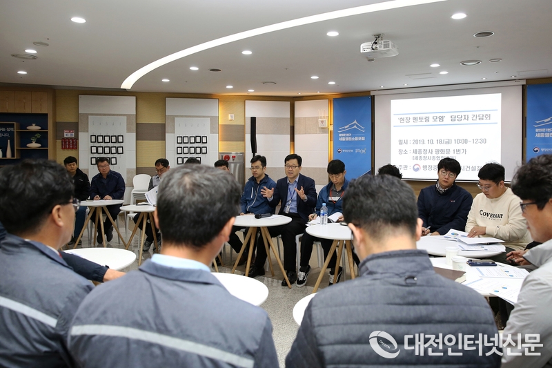 행정중심복합도시 건설현장의 자율적인 품질·안전관리 역량 강화를 위해 운영 중인 ‘현장 멘토링 모임’의 효율적인 운영 및 정보공유 효과 높이기 위해 현장 담당자(멘토)를 대상으로 간담회를 실시했다. (사진=행복청)