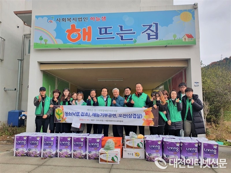 [대전 인터넷신문=세종/권혁선 기자] 세종시새마을회는 18일 한국영상대학교 사회복지학과 재학생 등으로 구성된 세종Y-SMU 포럼과 새마을관계자 등 25명이 지적 장애인 거주시설 ‘해 뜨는 집’(전의면 노곡리 소재)을 방문하여 봉사활동을 실시했다고 밝혔다.