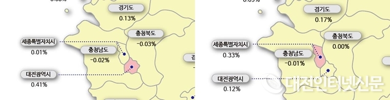 인근도시 대전광역시는 높은 상승세를 이어갔다. 유성구는 전민·상대동 등 입지여건 양호한 단지 위주로 상승하는 모습이다. 중구는 태평동 대단지 위주로, 대덕구는 신대동 일부 재건축 단지와 정주여건 양호한 지역 위주로 상승했다.