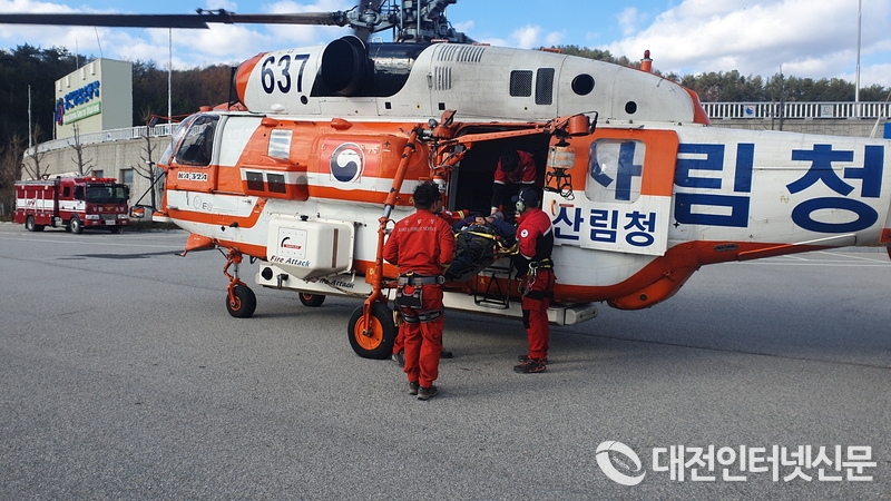 [대전 인터넷신문=대전/박미서기자] 산림청 산림항공본부는 26일 강원도 홍천군 내촌면 와야리 백암산 부근에서 가슴 통증을 호소하는 황00씨(59,남)를 산림청 헬기로 구조하여 응급의료기관에 긴급 이송했다고 밝혔다.