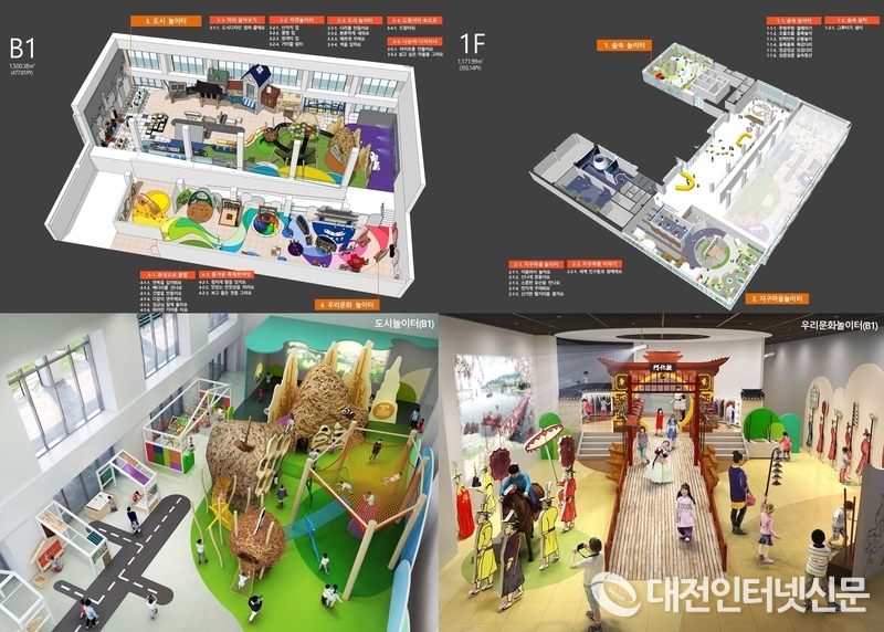 어린이 박물관 지하1층과 1층에 ▲숲속놀이터 ▲지구마을놀이터 ▲도시놀이터 ▲우리문화놀이터 등 상설전시실과 기획전시실 1개로 구성될 예정이다. (사진-행복청)