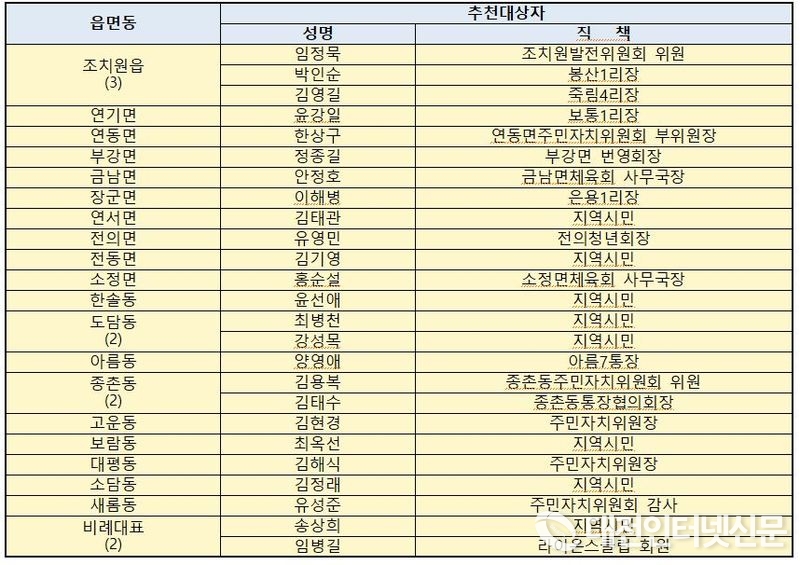 유공시민: 25명 명단(사진-세종시의회)