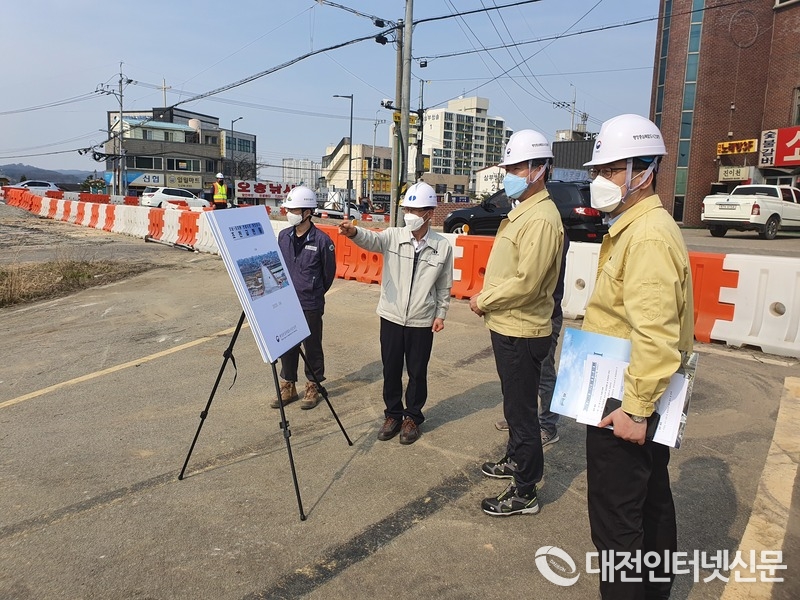 박무익 행복청 차장이 이날 ‘오송~조치원 연결도로’ 건설현장을 점검하고 현장 직원들을 격려했다. (사진-행복청)