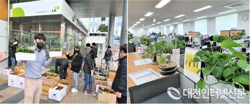 LH 세종특별본부(본부장 임동희)가 지역 내 화훼업계 지원을 위해 ‘사무실 내 1인 1화분 갖기’행사를 추진하고 사무실에 화분을 비치한 모습. [사진-LH 세종특별본부]