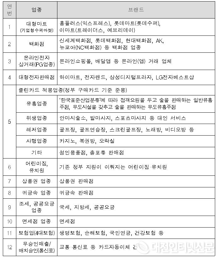 다만, 백화점 및 대형마트, 온라인쇼핑몰, 상품권 및 귀금속 판매매장, 유흥·레저·사행업종, 조세 및 공공요금 납부 등은 사용 제한됩니다.