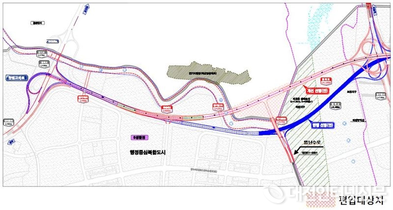 [대전인터넷신문=세종/백승원 기자] 국토교통부는 행복도시 외곽순환도로의 북측 구간에 대해 차량주행 안전성 향상, 교통흐름 개선 등을 위해 현재 계획된 도로선형을 개선하고, 이를 위해 행복도시 예정지역 일부를 변경할 예정이라고 7일 밝혔다.