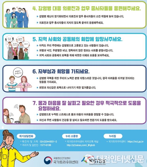 한편 심리지원이 필요한 시민은 평일 9시부터 18시까지 세종시 정신건강복지센터로 연락하면 자세한 안내를 받을 수 있다.
