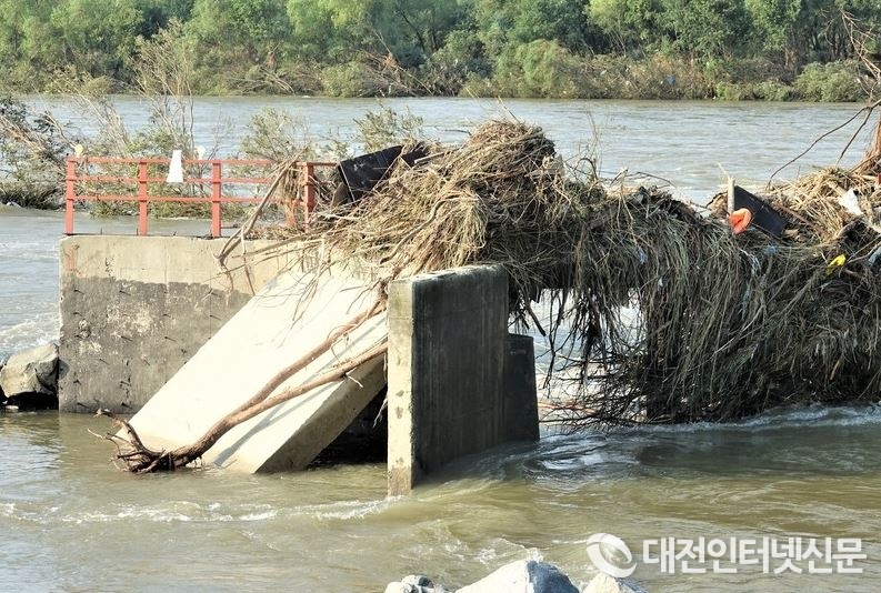 지난 장마로 인해 부용면에 위치한 가교가 파손되었다.(사진-대전인터넷신문)
