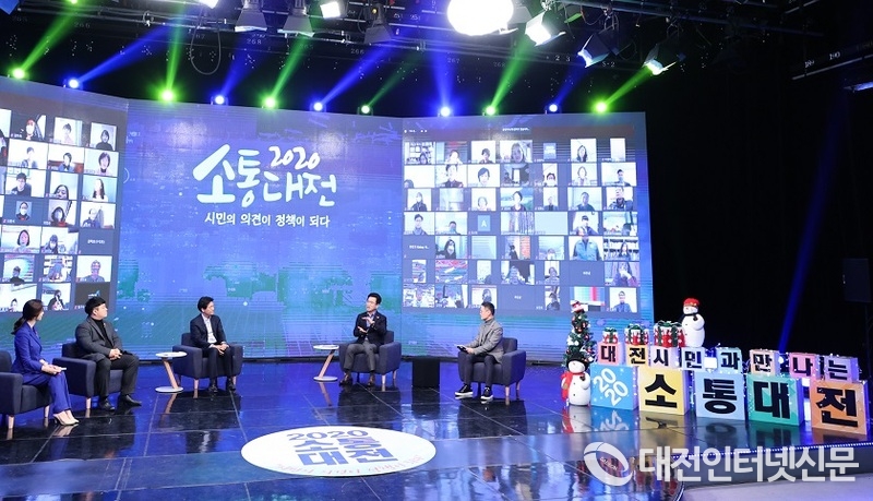 18일 대전시에 따르면 이날 대전MBC 공개홀에서 허태정 시장과 시민 100여 명, 장수찬 목원대학교 행정학과 교수, 김영진 사회적협동조합 혁신청 대표가 전문가 패널로 참석한 가운데 온라인 시민과의 대화 ‘소통대전’을 개최했다.