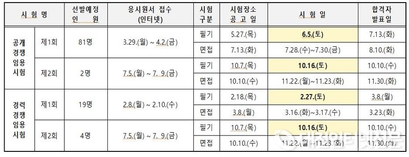 한편 공채시험은 8·9급이 오는 6월 5일 시행되고,  7급은 10월 16일 전국 동시 시행되는 가운데 세부 시험일정 및 선발예정 인원, 달라지는 시험제도 등은 시청 누리집 ‘시험정보’를 통해 확인할 수 있다.