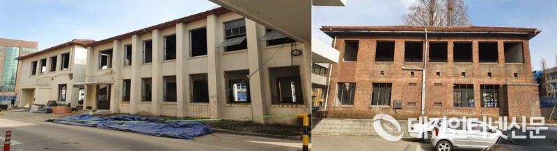 대전시가 ‘소통협력공간조성사업’을 진행하고 있는 (구)충남도청 내 옛 우체국·선관위·무기고 건물들(사진-대전인터넷신문)