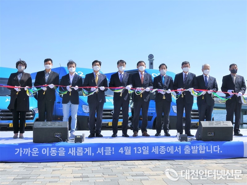 시는 13일 세종호수공원에서 이춘희 시장, 윤성원 국토교통부 1차관, 세종시 산업건설위원회 의원 등 50여 명이 참석한 가운데 ‘셔클 도입 기념행사’를 갖고 정식 운행을 개시했다.