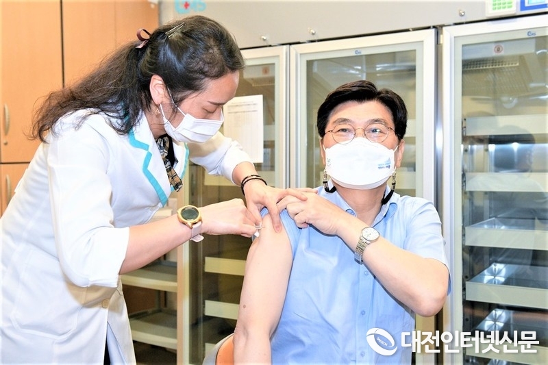 이춘희 세종시장이 아스트라제네카(AZ)를 접종을 하고 있다. (사진-세종시)