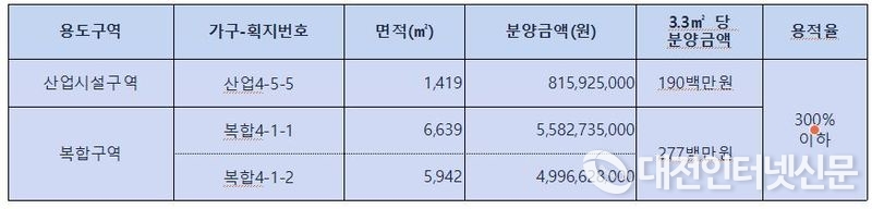 이번 분양토지는 분양대상 52필지 중 잔여 산업용지 1필지와 복합용지(일부 근린생활시설 허용) 2필지로, 분양가격은 3.3㎡ 기준 산업용지 190만 원, 복합용지 277만 원으로 낮게 책정됐다.