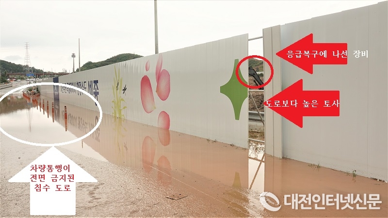 [대전인터넷신문=세종/최대열기자] LH 세종특별본부가 엉터리 토목공사 강행으로 도로가 침수, 이곳을 지나던 차량 여러 대가 흙탕물에 엔진이 침수되면서 LH 투기 의혹, 구조조정과 함께 LH에 대한 정부 차원의 지도 점검이 절실히 요구되고 있다.