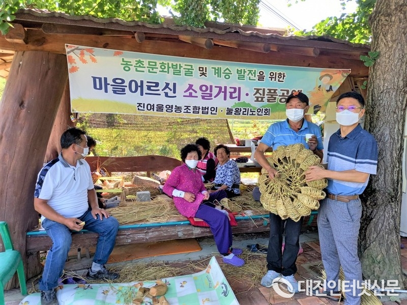 사회적 농업 활동 일환으로 노인들의 소일거리 만들기 사업을 확대하고 농촌 문화 계승을 위해 마련짚풀공예, 짚신 삼기 활동으로 친목 도모, 일거리창출 등 효과를 누리고 있다. (사진-세종시)