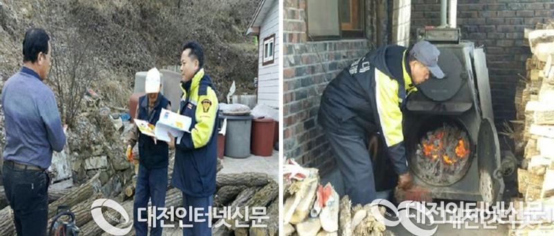 세종 소방본부 직원들이 화목보일러 사용 농가를 방문, 점검하는 모습. [사진-대전인터넷신문 자료]