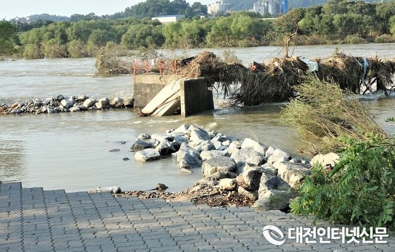 지난 20년 8월 집중호우로 붕괴된 세종시 부강면 부용가교. [사진-대전인터넷신문]