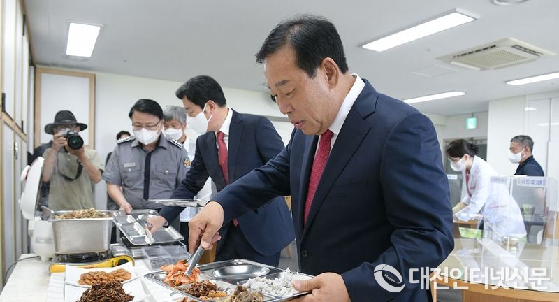 최 민호 시장이 현장직원들과의 식사를 하기위해 세종시청 구내식당을 찾았다. [사진-세종시]