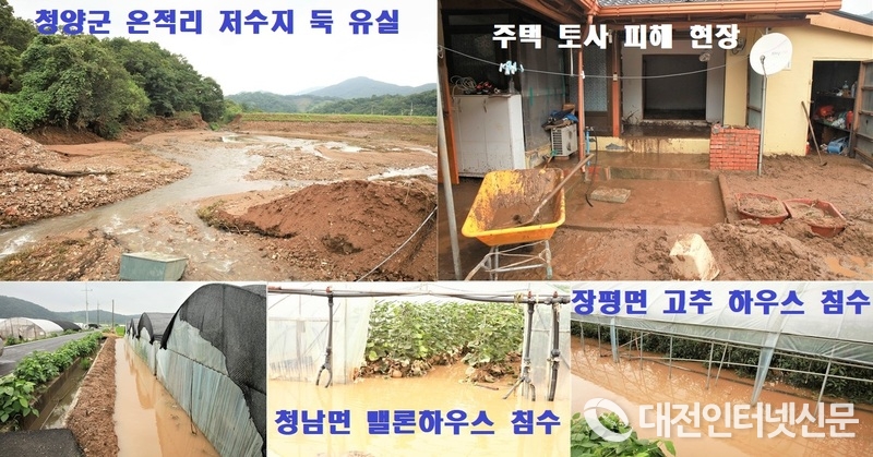 청양군 장평면에서는 수로 작업 중이던 80대가 다쳐 병원으로 이송되는 등 침수, 사면 붕괴 등 크고작은 재난사고가 발생했고 농경지 200여ha가 물에 잠겼다. 이날 집중호우로 청양군을 비롯한 공주 등에서 주민 50여명이 주택가 인근 하천물을 피해 긴급대피했다가 오전에 귀가하는 등 충남 남부를 중심으로 약 200ha 이상의 침수피해가 발생한 것으로 집계됐다.