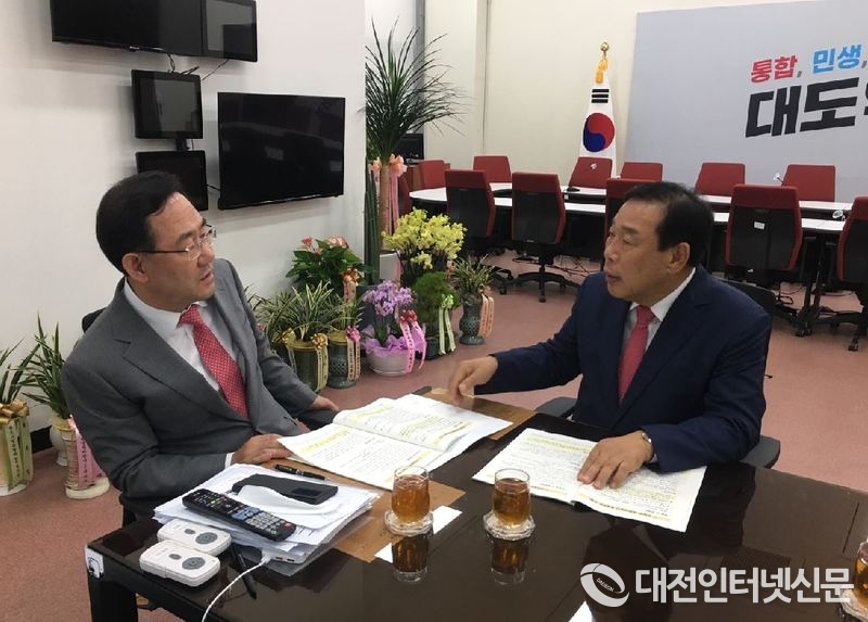 최민호 세종시장이 주호영 원내대표와의 면담을 하고 있는 장면[사진-세종시]