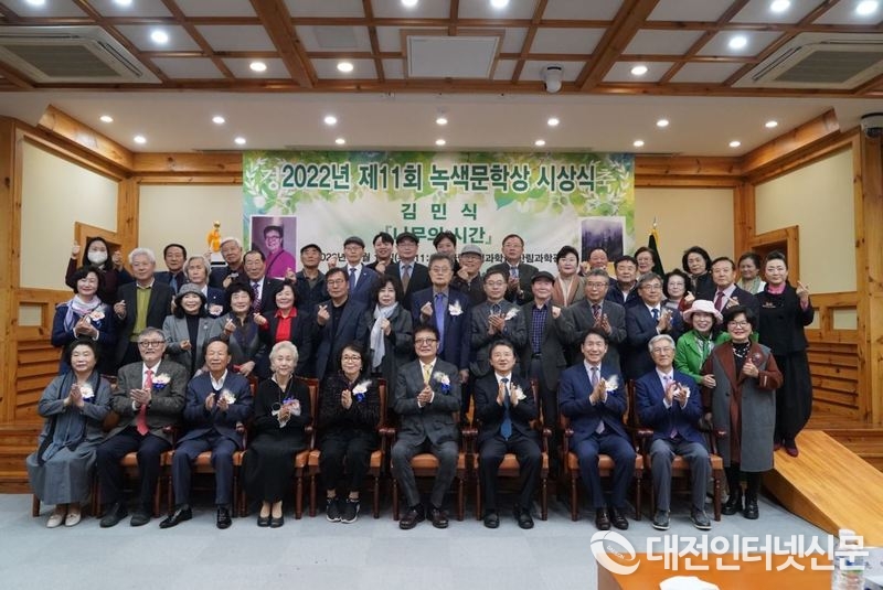[대전인터넷신문=대전/권혁선 기자] 남성현 산림청장이 19일 서울시 동대문구 국립산림과학원에서 열린 '2022년 제11회 녹색문학상 시상식'에 참석했다.