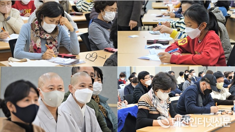 정목스님의 진리를 한글자로도 놓치지 않으려고 열중하는 수강생들.. [사진-대전인터넷신문]