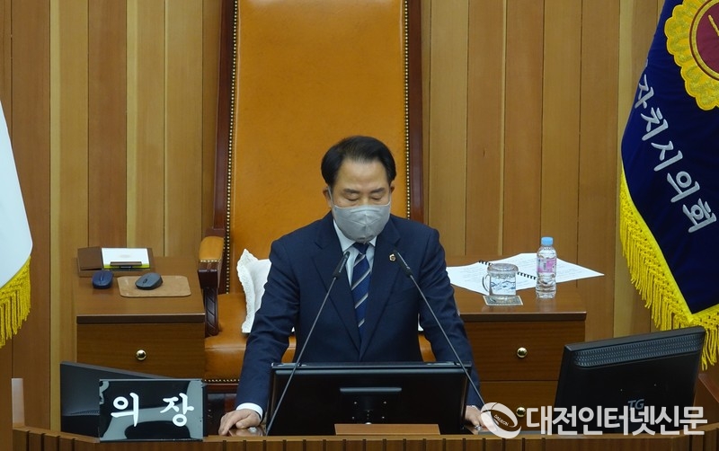 정례회에서 발언하는 상병헌 의장의 모습. [사진-대전인터넷신문]