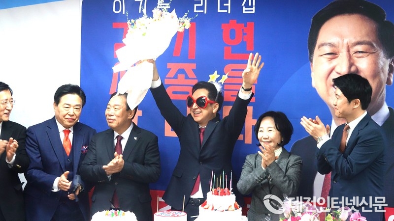 한편, 이날 세종시당에는 최민호 세종시장과 류제화 세종시당 위원장, 송아영 세종시을 당협위원장, 성선제 전 세종시장 예비후보, 조관식 박사, 김광운·김동빈·김학서·김충식·윤지성·최원석 국민의힘 소속 세종시의회 의원도 김 후보를 환영했다.
