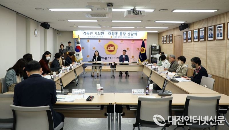 [대전인터넷신문=세종/권혁선 기자] 세종시의회 미래전략수도 완성 특별위원장 김동빈 의원은 21일 대평동 통장들과의 간담회를 개최했다.