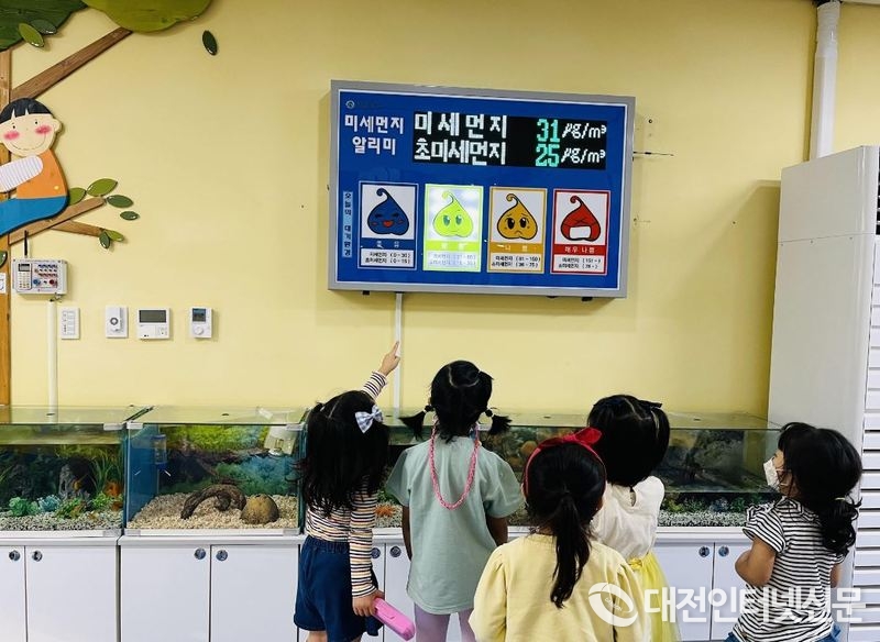 세종안심유치원에 미세먼지 알림판이 설치되어 있다.[사진-세종시교육청]
