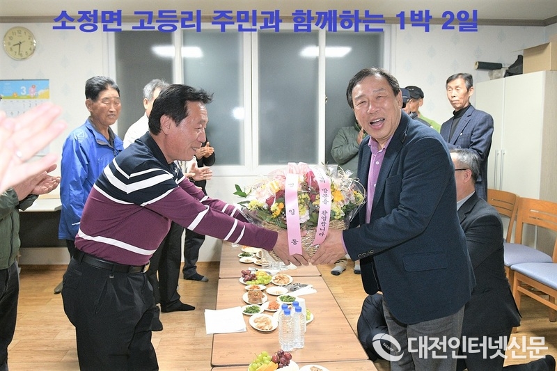 최민호 세종시장과 함께하는 소정면 1박 2일 - "대곡교 복구 공사 해법 찾겠다" - 대곡1·고등1리 방문…마을회관에서 숙박하며 주민과 대화