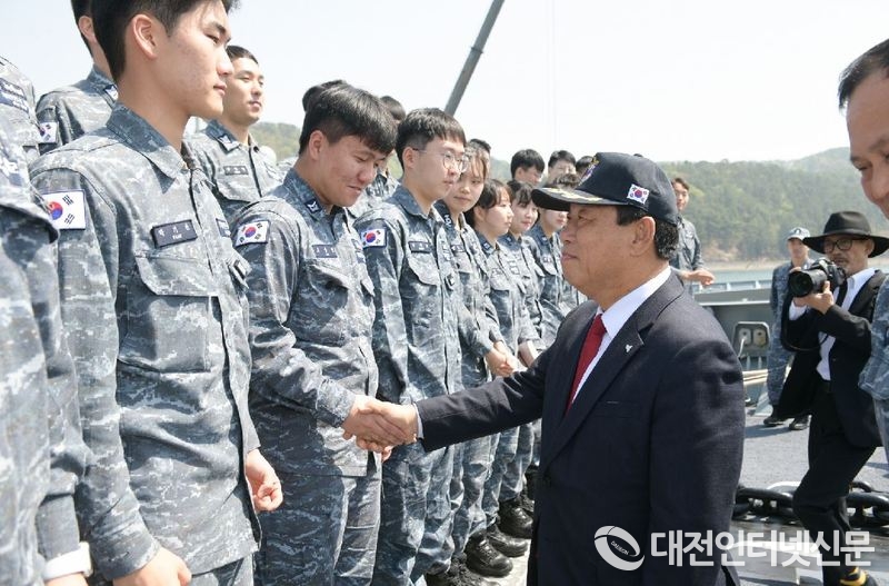 그러면서 “여러분들의 애국심에 경의를 표하며 앞으로도 해군과 함께 다양한 교류협력사업을 펼치겠다”라고 말했다.