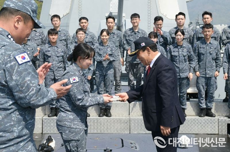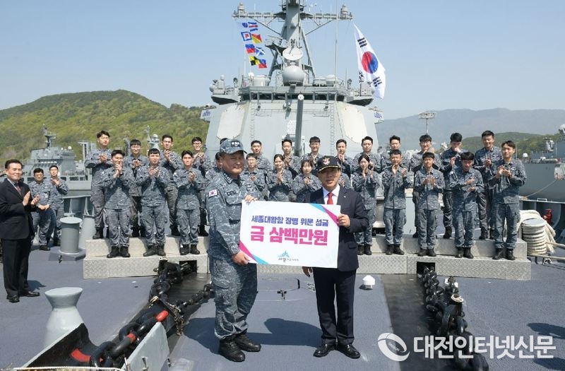 최민호 시장은 “대한민국을 대표하는 최첨단 무기체계와 정보통신 장비가 탑재된 세종대왕함이 도입됐을 때 기억이 생생하다”라며 “빈틈없이 바다를 수호하는 해군장병들 덕택에 국민들이 평화로운 일상을 살아가고 있다”라고 말했다.