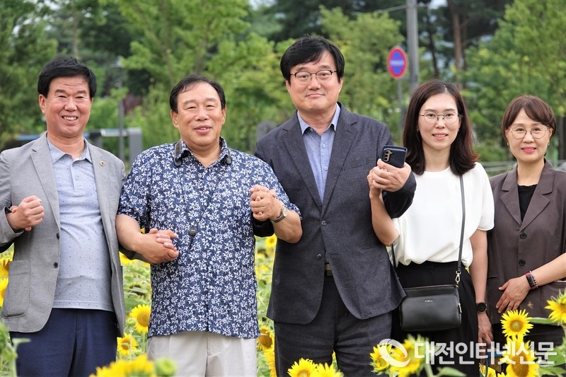 좌부터) 김동빈 시의원, 최민호 시장, 양완식 보건국장, 대평동장과 손 잡고 한 컷. [사진-대전인터넷신문]