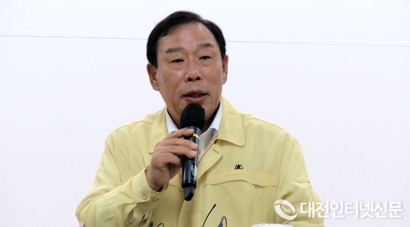 최민호 세종시장이 19일 호우 대처 상황에 대한 브리핑을 하고 있다.[사진-대전인터넷신문]