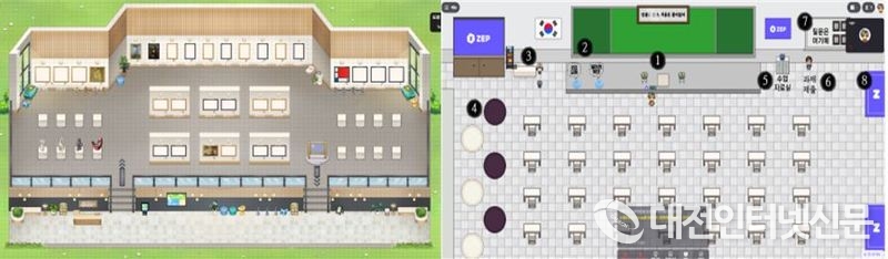 (왼쪽) 맞춤법 교육 메타버스 (오른쪽) 지역화 교육 행복도시 세종 메타버스[사진-세종시교육청]
