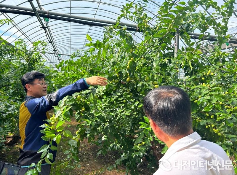 [대전인터넷신문=대전/ 이향순 기자] 산림청이 31일 대추 주산지인 보은군을 찾아 추석 성수품의 안정적인 공급을 위한 현장점검을 했다.