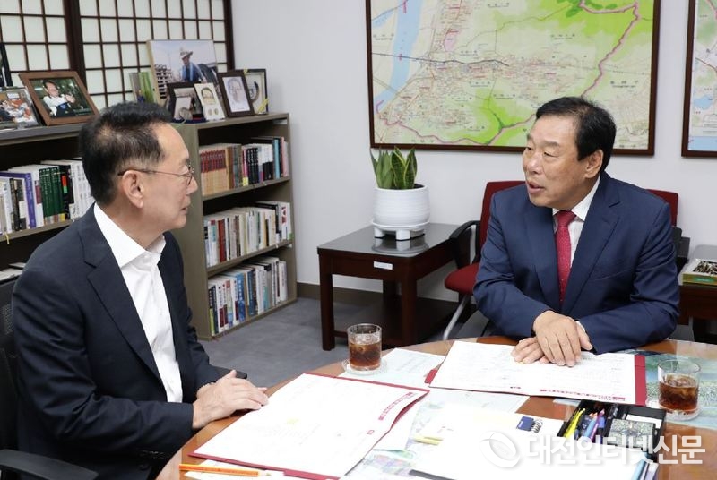이에 앞서 최민호 시장은 서삼석 예결위원장을 만나 국회세종의사당 부지매입비와 대통령제2집무실의 설계비 증액, 세종시 종합체육시설 및 제2 컨벤션시설 건립비 등 현안 사업의 국비 반영을 건의했다.