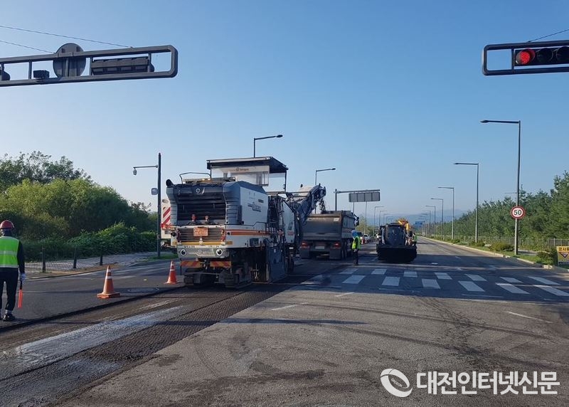 한국토지주택공사(LH) 세종특별본부가 입주민과 귀성객들의 안전한 도로 주행을 위해 햇무리교와 정부청사 사이에 위치한 절재로 구간에 대한 전면 재포장 공사를 시행하고 있다. [사진-(LH) 세종특별본부]