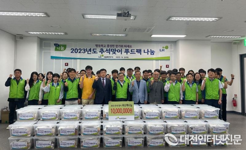 [대전인터넷신문=세종/권혁선 기자] LH 세종특별본부는 21일 이번 추석 명절을 맞이해 명절 음식 등으로 구성된 푸드팩을 제작해 저소득 가정 등 사회적 취약 계층에 전달했다.