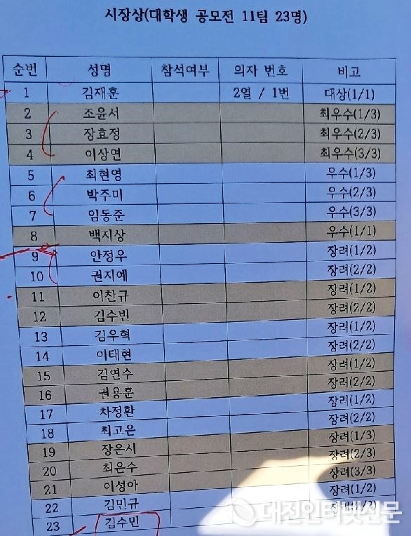 충남대 김재훈씨가 대상을 수상하고 있다.[사진-대전인터넷신문]