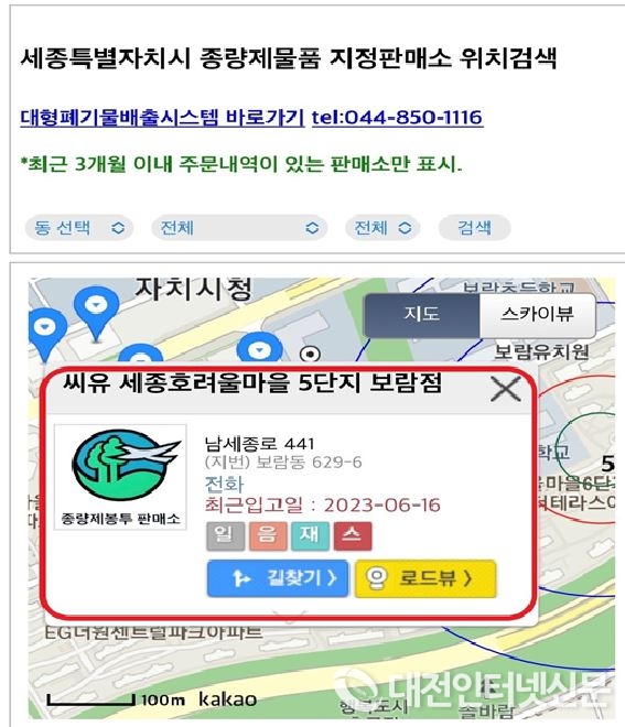 [대전인터넷신문=세종/권혁선 기자] 세종시시설관리공단은 종량제봉투 판매소 온라인 위치조회 서비스 품질향상을 위해 금년, 4차 시스템 기능 개선을 실시했다고 밝혔다.